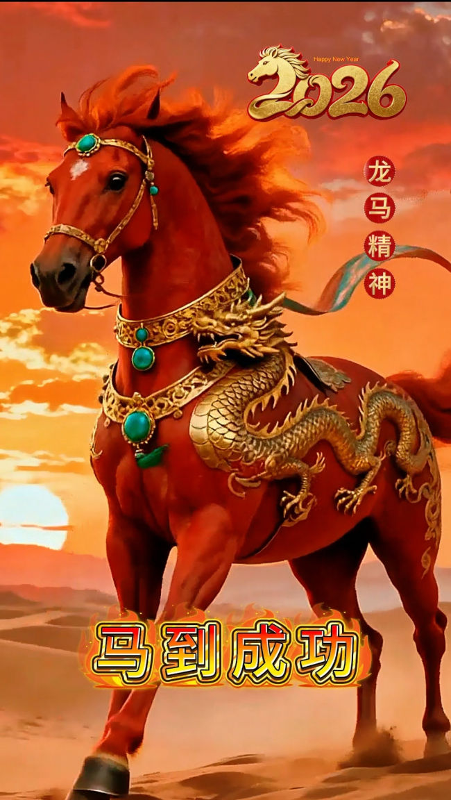 银蛇辞岁上瑶台,俊马奔腾画境开。